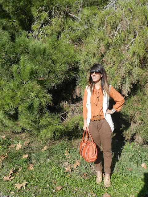 As you can see the color orange is the key, give colour to the winter days. High-waisted pants, shirt with a tie, vest and heels, an ideal combination for the daily life and believe me it is really practical. These oxford with heels from Suiteblanco last season, I've used a lot, are ideal!